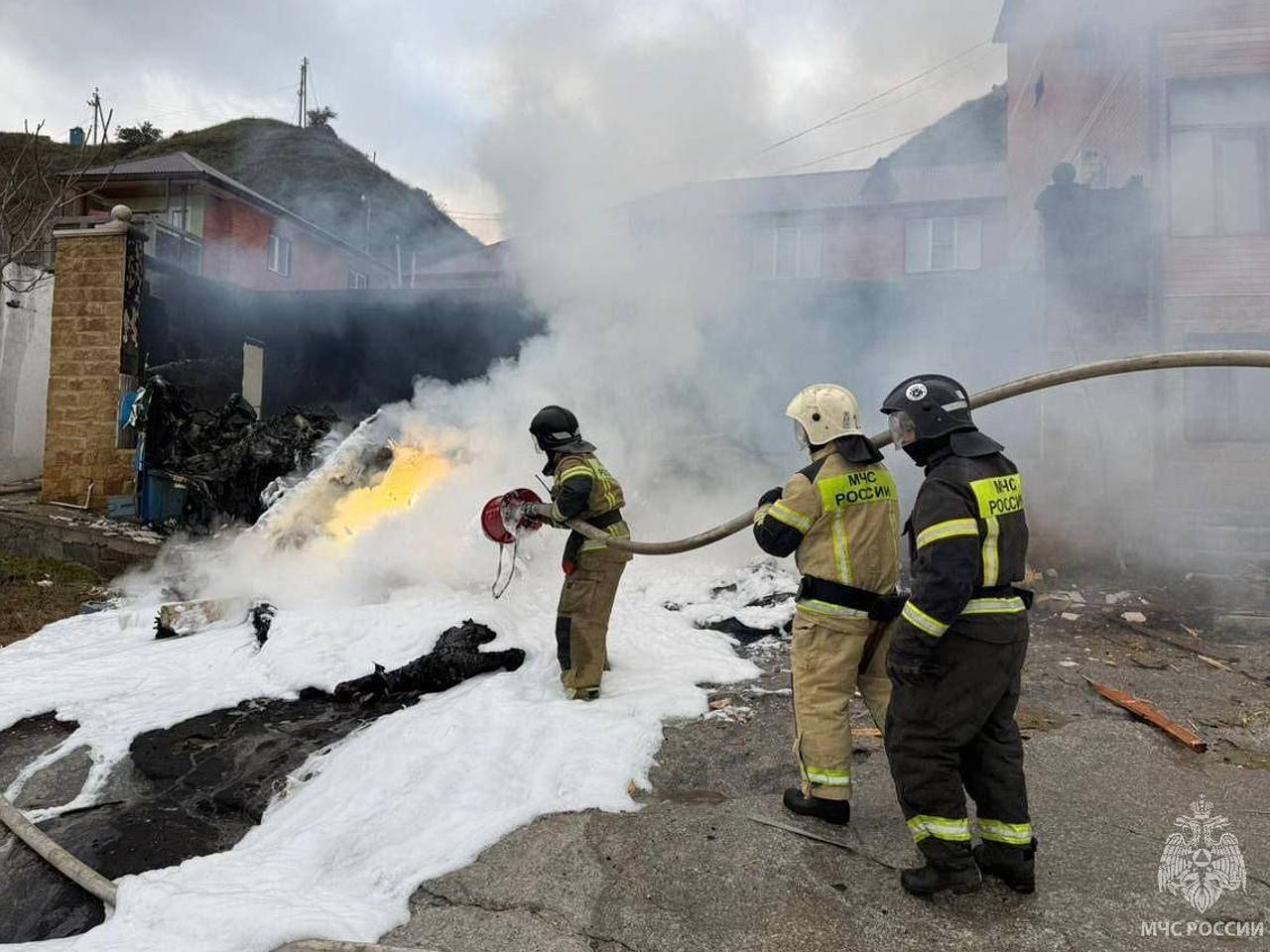 Сообщается, что упавший вертолет разрушил частный дом, который, по предварительным данным, был неэксплуатируемым и пустым.