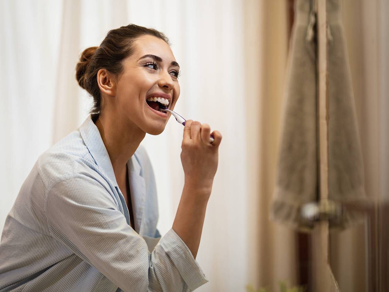 Она отметила, что чистить зубы следует не менее двух раз в день — утром и вечером. Качественная чистка начинается с правильного удержания щетки: угол в 45 градусов к линии десен помогает эффективно удалить мягкие отложения.