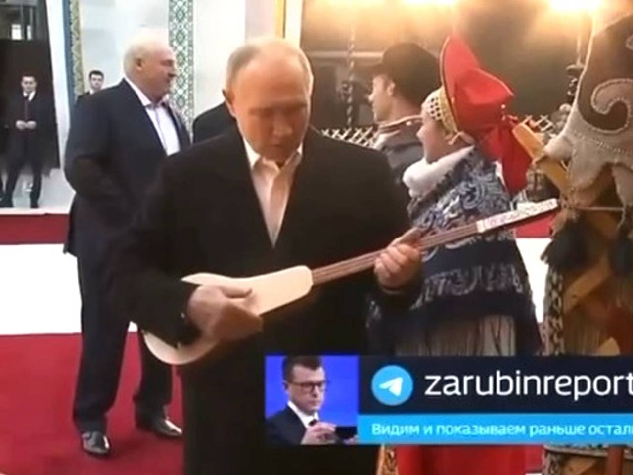Президент России Владимир Путин продемонстрировал свои музыкальные навыки, сыграв на комузе — традиционном киргизском инструменте. Видео с этим выступлением было опубликовано журналистом ВГТРК Павлом Зарубиным в его Telegram-канале.
