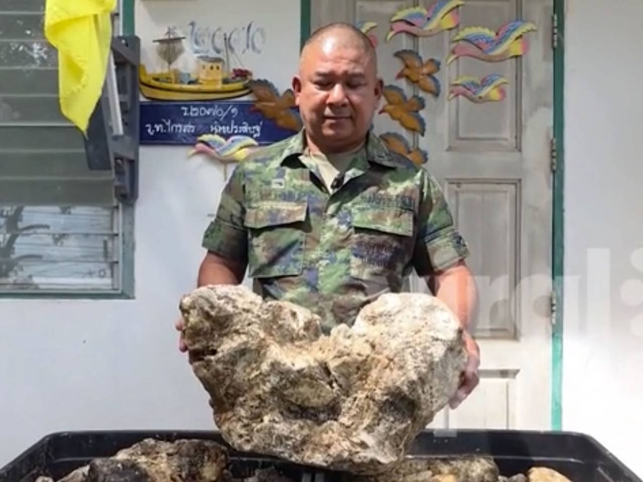 55-летний офицер Военно-морских сил Таиланда, Краисом Нунпрадит, выставил на продажу огромный сгусток амбры, редкого вещества, известного как рвота кашалота. Эта информация была опубликована Newsflare.