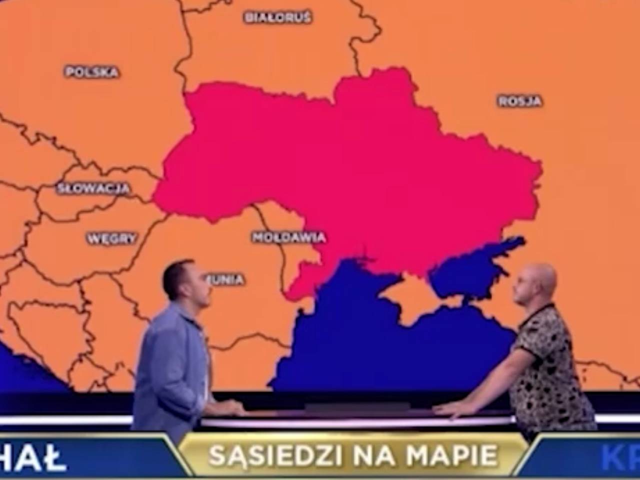 Польский канал TVN в ходе развлекательной программы The Floor продемонстрировал карту Украины, на которой Крым не был обозначен. В этом фрагменте передачи участнику викторины предстояло угадать название страны по ее контурам. Однако Крым, выделенный на карте, не был включен в территорию Украины и был фактически отнесен к России.