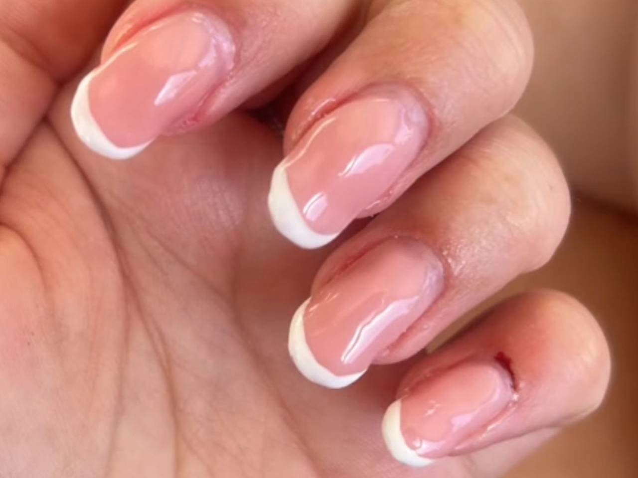 Пользовательница Эдейн О’Коннелл поделилась в TikTok видео с неудачным маникюром, который зрители оценили как «ногти после пожара?». В ролике она показала свои ногти, окрашенные в розовый цвет с белыми полосами, но при этом они выглядели изогнутыми и поврежденными, а один из пальцев был поранен.