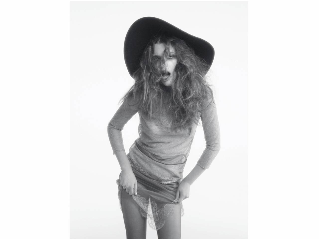 Эвер Андерсон, 18-летняя дочь актрисы Миллы Йовович и режиссера Пола Андерсона, продемонстрировала откровенный образ в своем недавнем посте. Она приняла участие в фотосессии для журнала Beyond Noise, где позировала в кружевном лонгсливе и прозрачной юбке, через которую проглядывали трусы. Стилисты завершили образ девушки широкополой шляпой и небрежной прической.