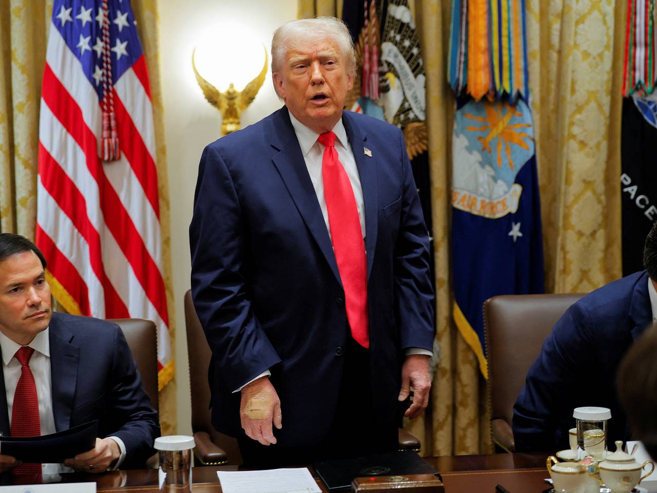 Ранее на запястье президента был замечен синяк. 17 июля пресс-секретарь Белого дома Каролин Левитт сообщила, что у Трампа была диагностирована венозная недостаточность, а синяк возник из-за частых рукопожатий. Причина ношения пластыря в данный момент остается неизвестной.
