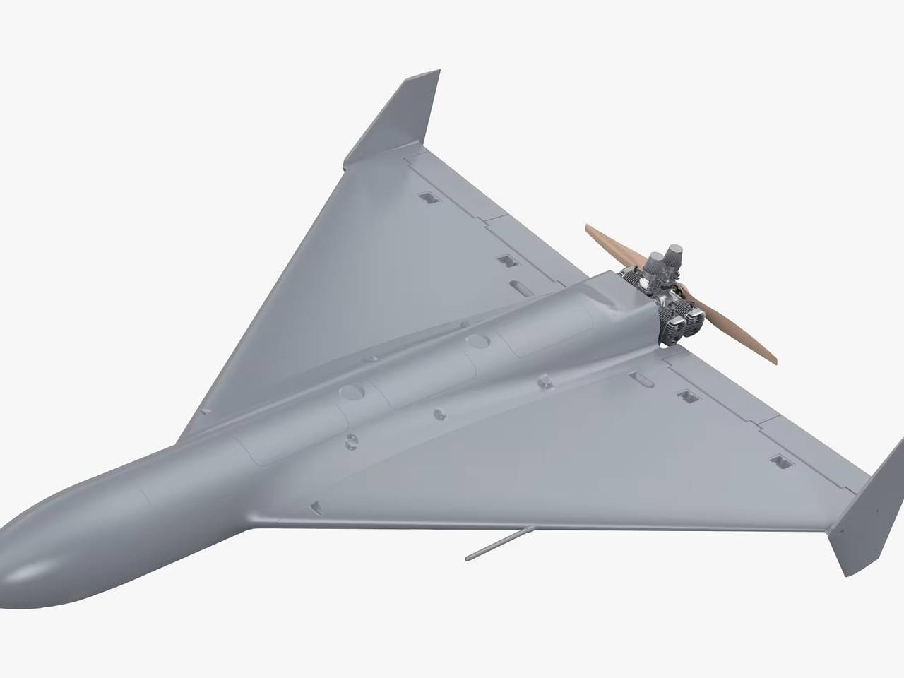 В видео демонстрируются запуск, полет и поражение цели новым аппаратом. Как и «Герань», китайский дрон выполнен по схеме «бесхвостка». Он оснащен треугольным крылом и двигателем внутреннего сгорания, расположенным в задней части.