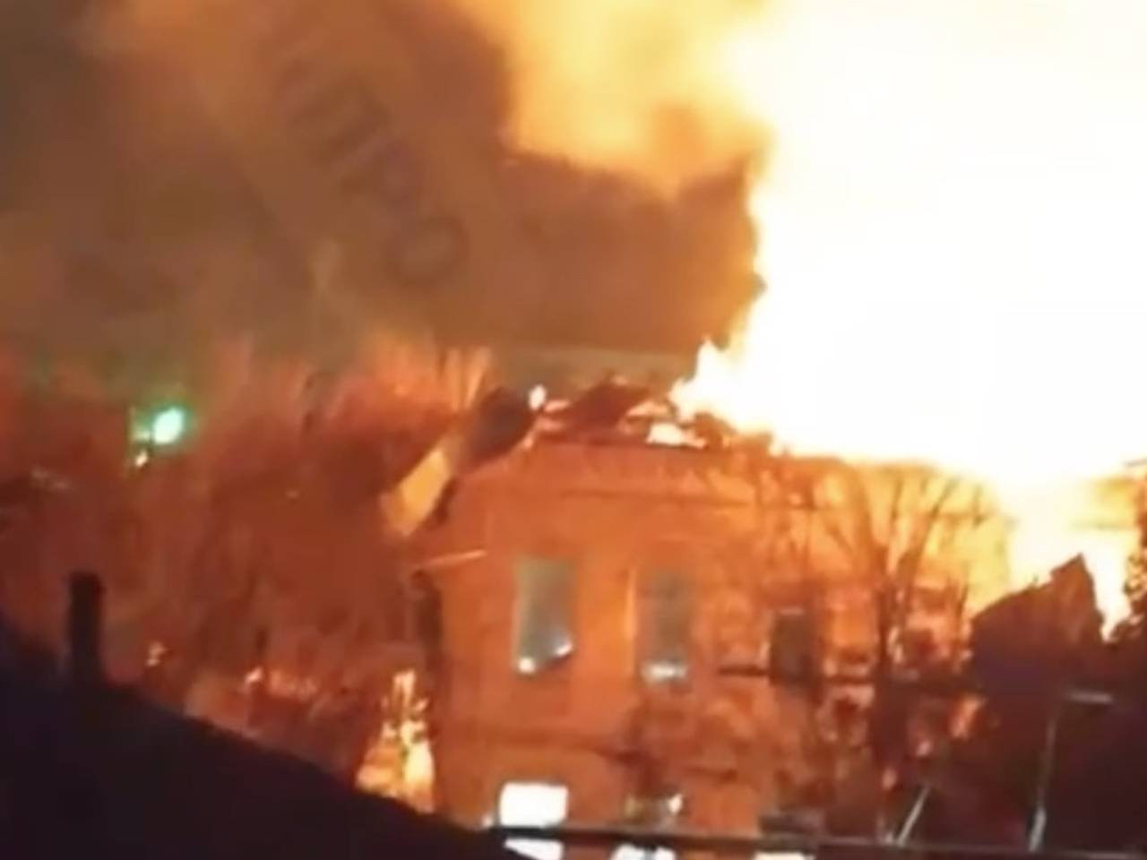 Также зафиксирован удар по административному зданию, что привело к сильному пожару.