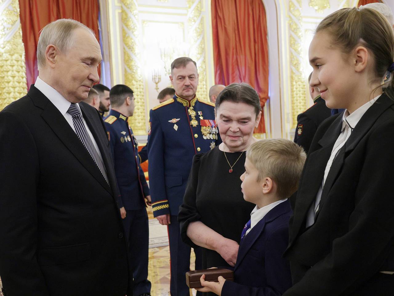 Президент вручил «Золотую звезду» Героя России матери и вдове сержанта Никиты Афанасьева. Сын погибшего героя растерянно держал в руках открытую шкатулку с наградой. Глава государства подошел к нему, закрыл шкатулку и задал несколько вопросов о его жизни.