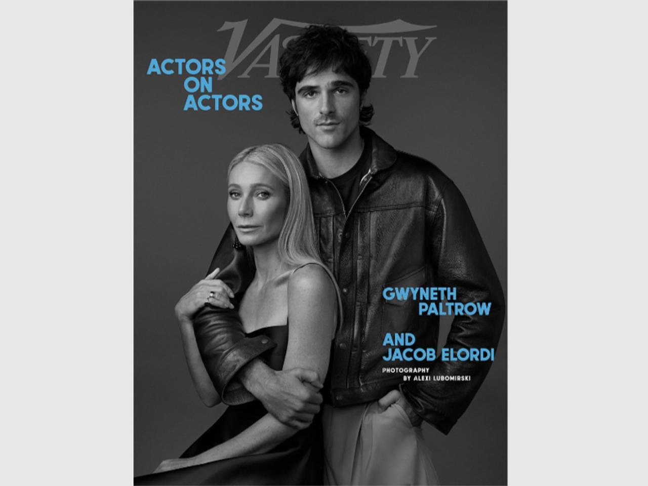 53-летняя звезда запечатлена на черно-белом снимке вместе с 28-летним актером Джейкобом Элорди. Она сидит на стуле в платье из атласа, открывающем плечи, с распущенными волосами, в то время как ее коллега одет в кожаную куртку и брюки с защипами.