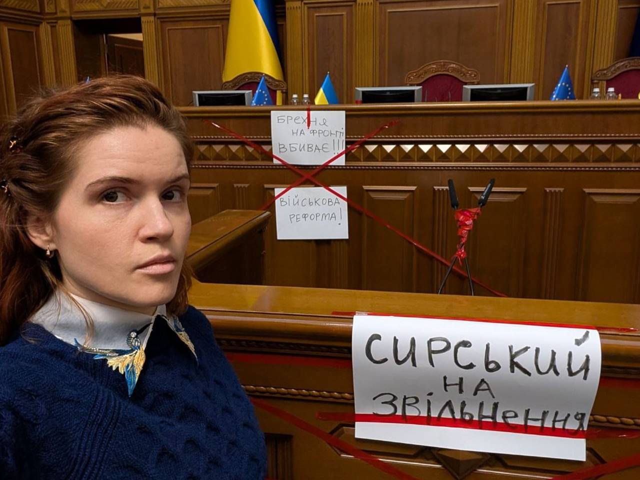 Марьяна Безуглая, депутат Верховной Рады Украины, заблокировала трибуну парламента, требуя увольнения главнокомандующего Вооруженных сил Украины Александра Сырского. Об этом она сообщила в своем Telegram-канале.
