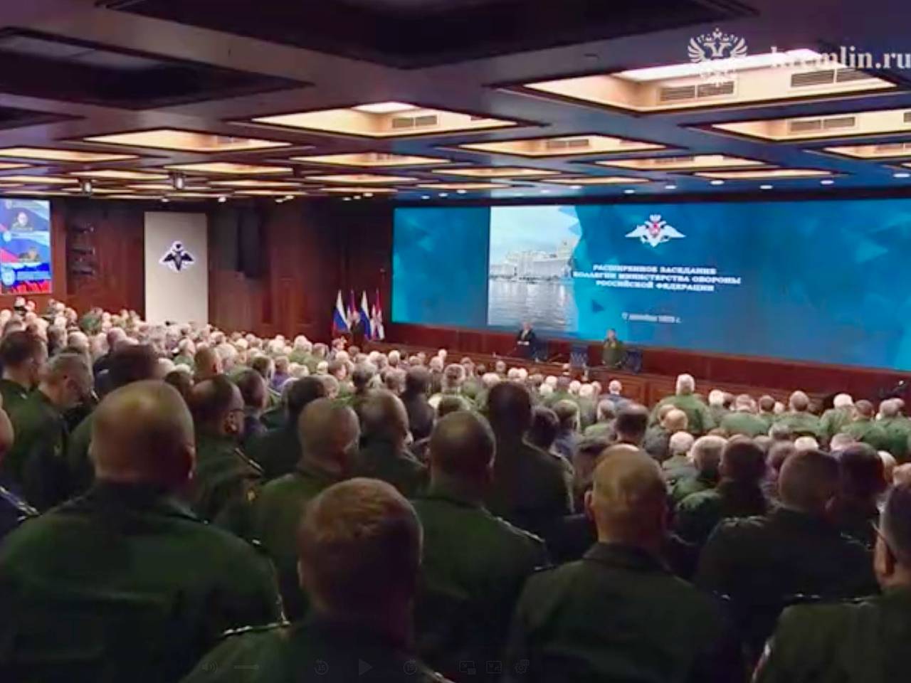 Во время расширенного заседания коллегии Министерства обороны президент России Владимир Путин объявил минуту молчания в память о военнослужащих, которые получили смертельные ранения в ходе специальной военной операции. Трансляция мероприятия доступна в Telegram-канале Кремля.