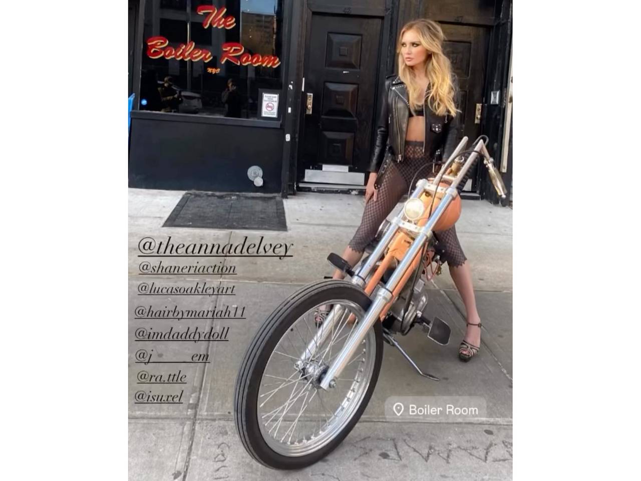 34-летняя аферистка, которая именует себя Анной Делви, позировала рядом с мотоциклом. На ней были прозрачные бриджи, сквозь которые просвечивались черные трусы. Дополняли образ бюстгальтер, укороченная кожаная куртка и туфли с открытым носом.